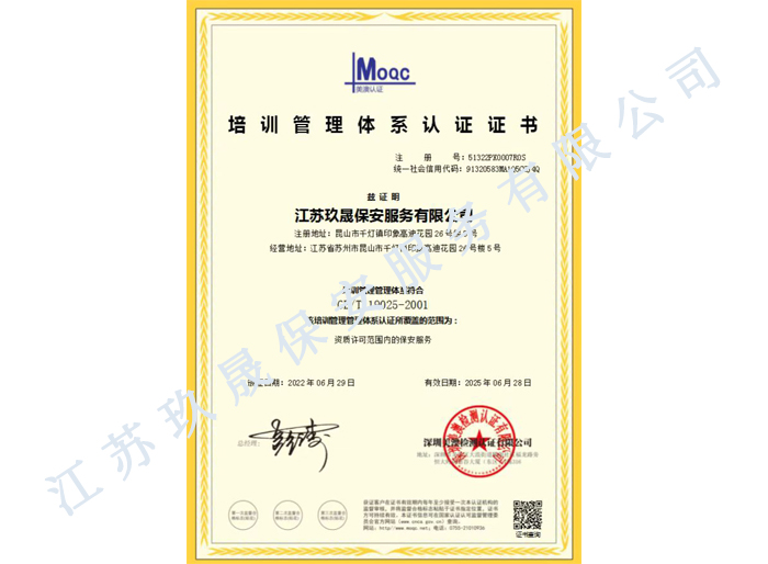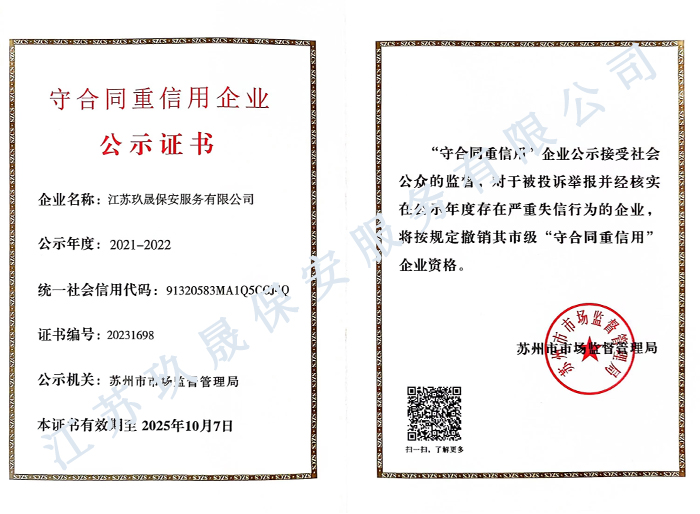 江蘇玖晟保安服務(wù)有限公司成立于江蘇省昆山市千燈鎮(zhèn)。注冊資金:2000萬,是擁有省公安廳頒發(fā)的保安服務(wù)許可證的企業(yè)【蘇公保服20170046】,也是昆山市保安協(xié)會常務(wù)理事單位。